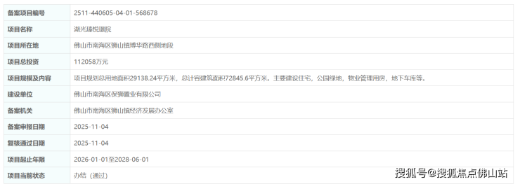 广东省投资项目在线审批监管平台显示,保利博爱湖新盘——湖光瑧悦璟院通过备案,预计最快2026年1月动工。