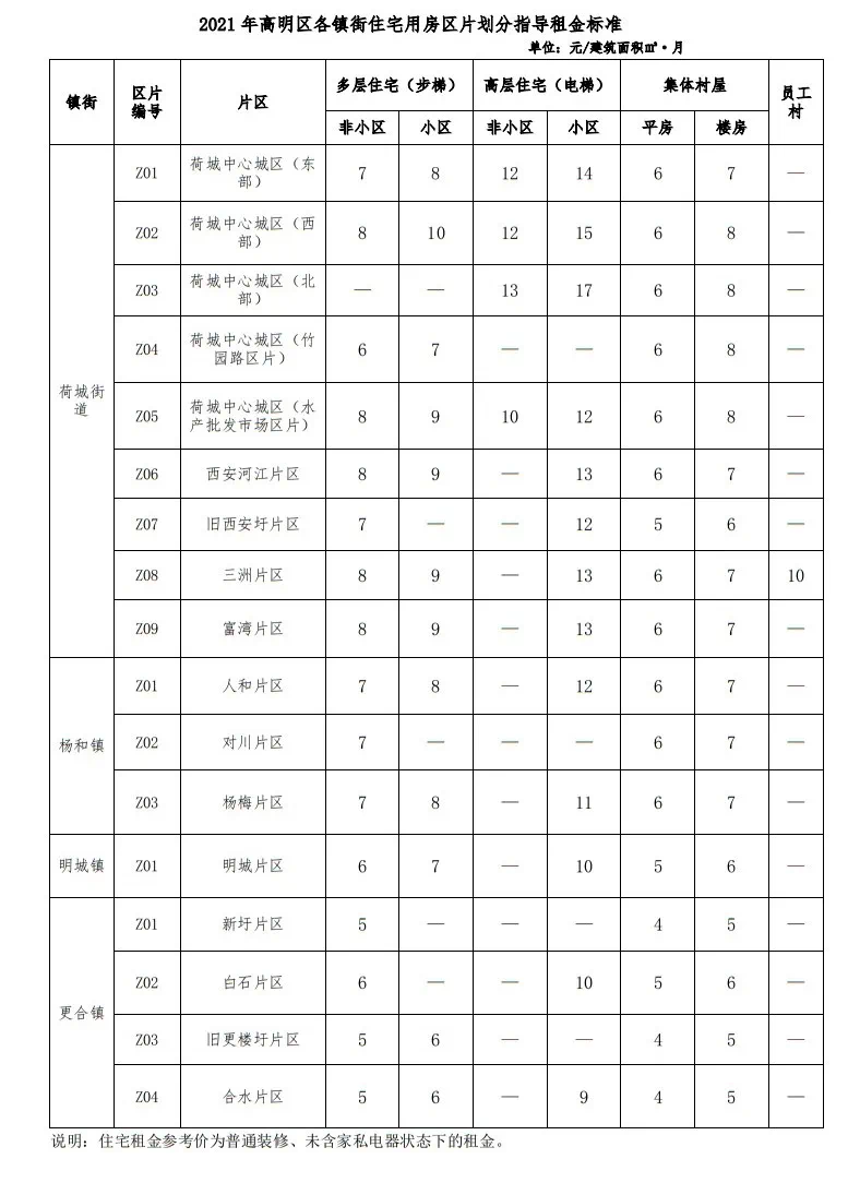 区住建水利局公布2021年高明区各镇街住宅用房区片划分指导租金标准中心城区租金指导价较高为17元/平方米👇👇👇