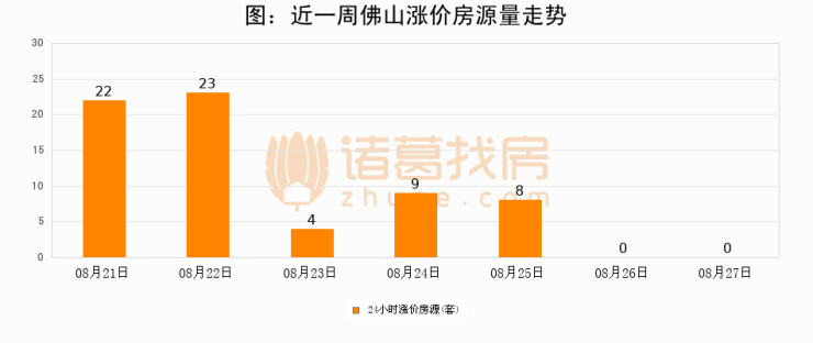 根据诸葛找房数据显示,佛山24小时涨价房源量为0套,较08月26日持平。