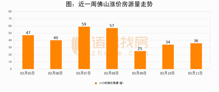 根据诸葛找房数据显示,佛山24小时涨价房源量为36套,较03月10日增加2套,环比上涨5.9%。与此同时,涨价房源占比小幅扩大,业主信心有所提升。