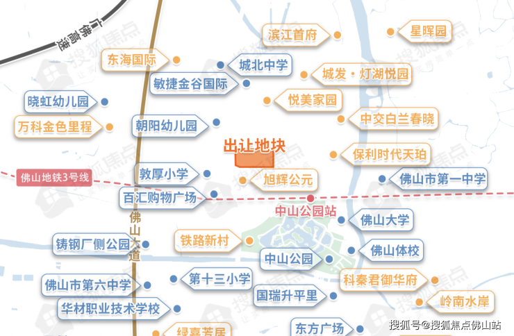 地块具体位于禅城区汾江北路64号,南面为旭辉公园,直线距离地铁3号线中山公园站约800米。值得一提的是,宗地为纯住宅安置房建设,建成的住宅及地下室产权车位全部用于回购。