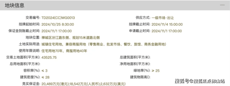9月28日,佛山照明南侧地块正式挂牌。宗地9.271亿起拍,折合楼面价7100元/㎡,于11月4日15时网拍。
