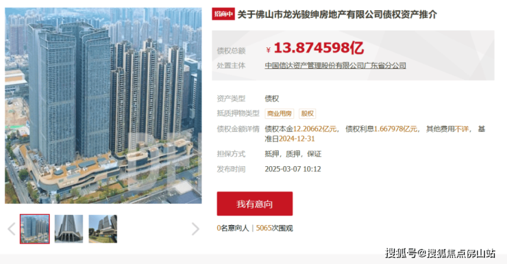 龙光房地产的债权资产于今年登上法拍网,截至目前,仍未有意向人。
