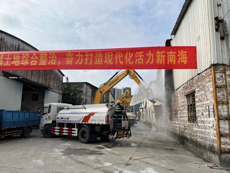 4月25日上午,南海区全域土地综合整治指挥部联合执法总队到桂城街道文海围工业区开展拆除行动,实施拆除面积约5000㎡。