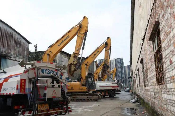 钩机启动拆除建筑。图/南海全域土地综合整治