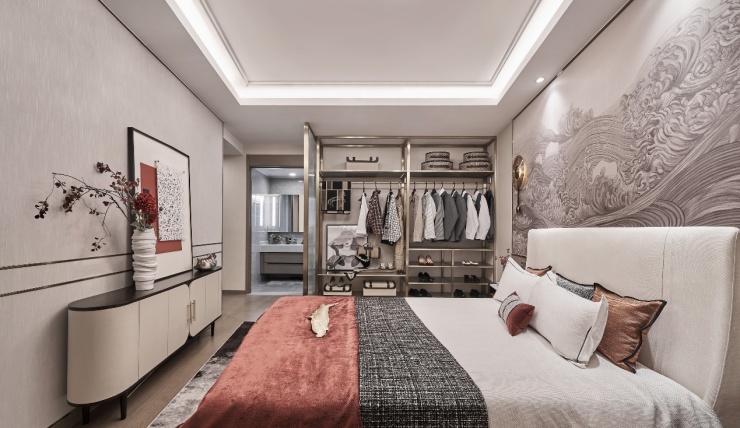 其中120㎡区别于普通平层具有超强的产品力,使用率超90%,空间上多享一房,客厅、阳台、主卧、次卧均实现三开间朝南,客餐厨一体化设计也让整个客厅的面宽接近5米,实现了家庭公区的较大化,空间阔绰得可与140平以上的产品相媲美,大宅气场表现得酣畅淋漓。