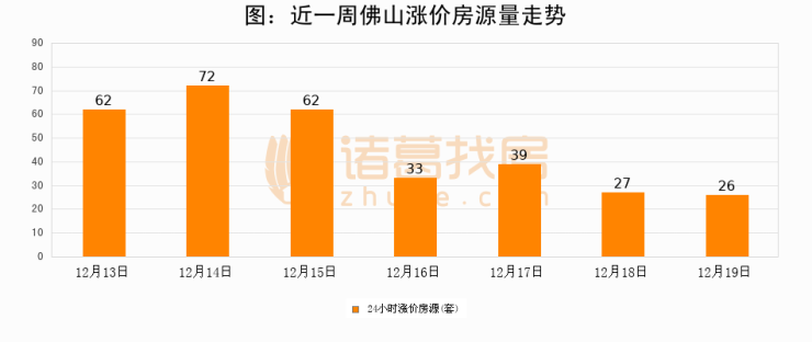 根据诸葛找房数据显示,佛山24小时涨价房源量为26套,较12月18日减少1套,环比下降3.7%。与此同时,涨价房源占比小幅回落,对于购房者来说是一个入市窗口期,购房者可抓住时机入市。
