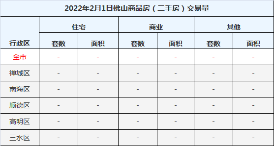 2月1日佛山五区一手房网签3套,二手房暂无成交