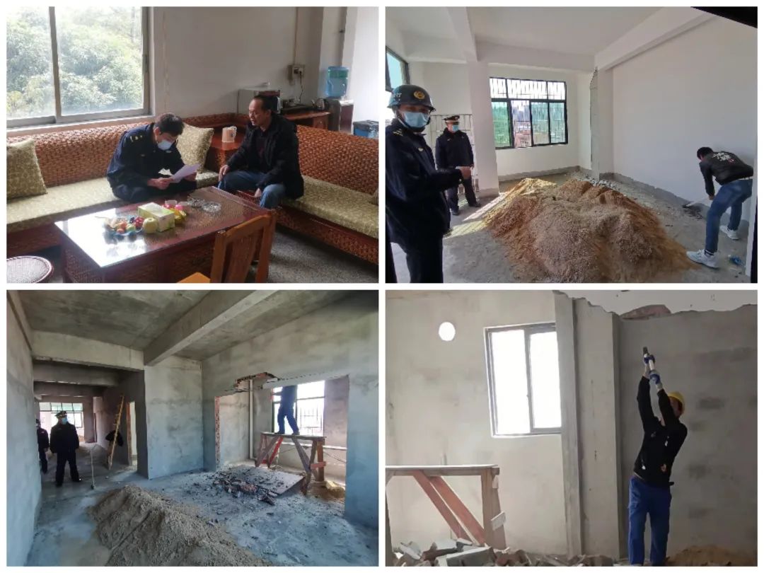 1月初,执法人员对黄岐泌冲大沙村进行违法建筑排查,经查北约直街一自建房在取得《建设规划许可证》的情况下超高违法建设。执法人员向其下达了《责令限期改正通知书》,责令其在限期自行拆除违建部分并恢复原貌。在此期间,执法人员坚持非现场执法和现场执法相结合,多次上门对当事人做思想工作,通过宣传政策法规和典型案例解说,告知其违法建设存在的问题和严重后果。2月23日,当事人终认识到自己的错误,签下承诺书并于当天下午自行拆除违建部分,执法人员对现场进行监督并给出指导意见。截至2月26日,该违建已完成拆除。