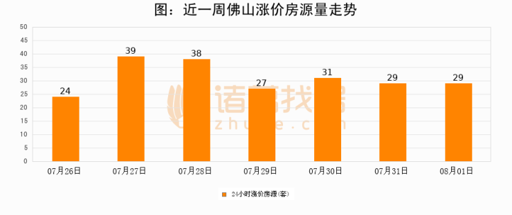 根据诸葛找房数据显示,佛山24小时涨价房源量为29套,较07月31日持平。
