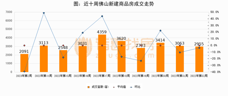 进入2023年第02周(01月02日-01月08日),佛山新建商品房成交2955套,较上周减少108套,环比下降3.5%