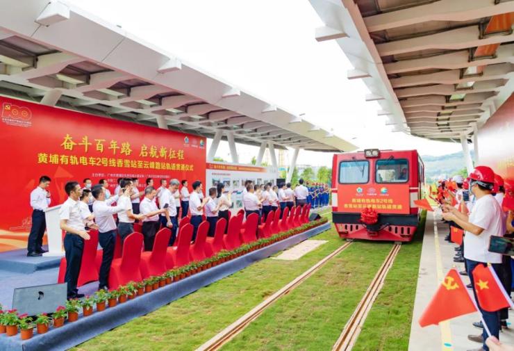 2021年7月1日,黄埔有轨电车2号线香雪站-云峰路站轨道贯通仪式在玉岩路站隆重举行,标志着香雪站至云峰路站有轨电车线路实现贯通,也为后续全线轨道贯通奠定坚实基础,科学城主城区域交通通勤将更加便捷。与此同时,玉岩路双向市政道路同步贯通,也将于近期开放通行,可有效缓解萝岗香雪和永和隧道片区交通压力,让科学城主城建设快步升级。