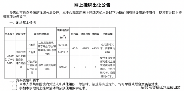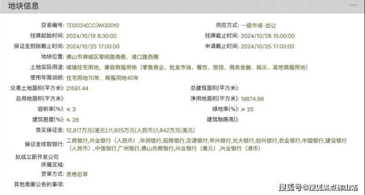 9月13日,佛山市公共资源交易中心挂牌一宗位于 黎明路南侧、港口路西 侧 的居住用地。
