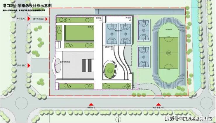 此外,挂牌公告中还发布了港口路小学的设计示意图。
