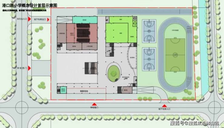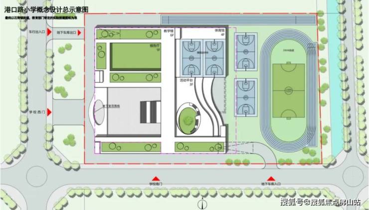 此外,挂牌公告中还发布了港口路小学的设计示意图。