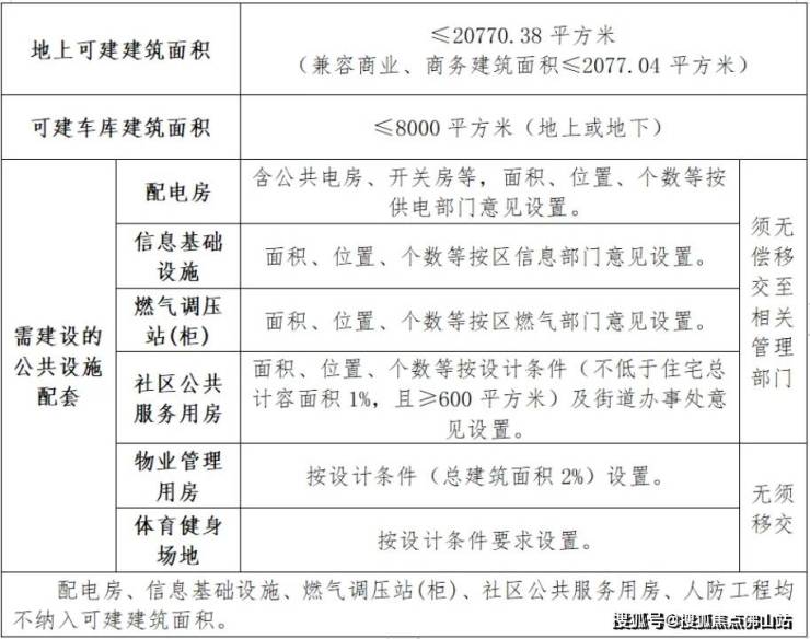 地块配建方面,涵盖居家养老服务中心、社区公共服务用房、物业管理用房、体育健身场地、开放公园绿地等公共配套设施,建成后须移交给政府。