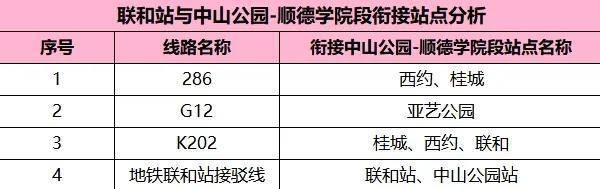 除了联和与中山公园的接驳车,地铁联和站设有6条公交线路 是接驳到地铁广佛线 的,也有接驳到中山公园至顺德学院段 相关站点的车辆。