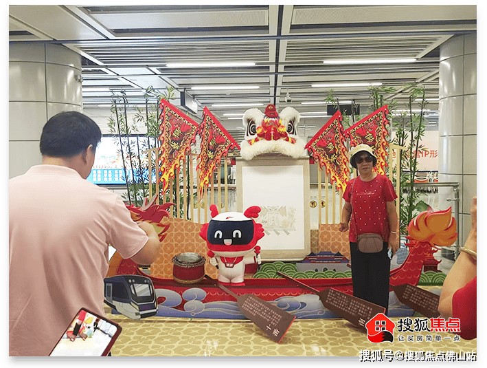桂城站现场设置了美陈打卡点,融入龙舟、佛山十番 等非遗元素,另外可以参加打卡活动,不少市民正排队参与。
