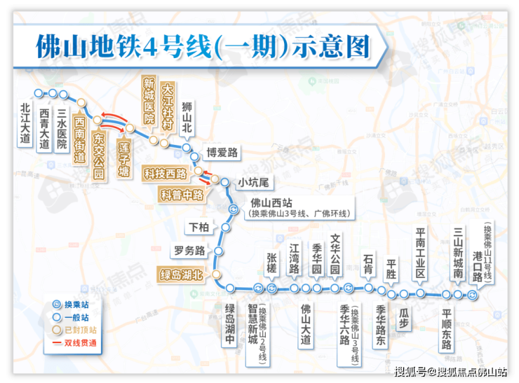 一期工程全长55.22km,西起三水区北江大道站,东至南海区港口路站,全线共设33座车站。