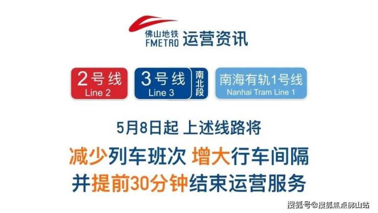 从去年5月起,佛山地铁2号线、3号线以及南海有轨1号线提前30分钟收车,减少列车班次、发车时间间隔变长。