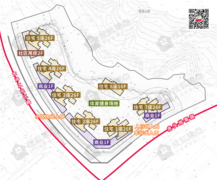 该地块紧邻420亩生态山体公园,社区内设有体育健身场地一处。