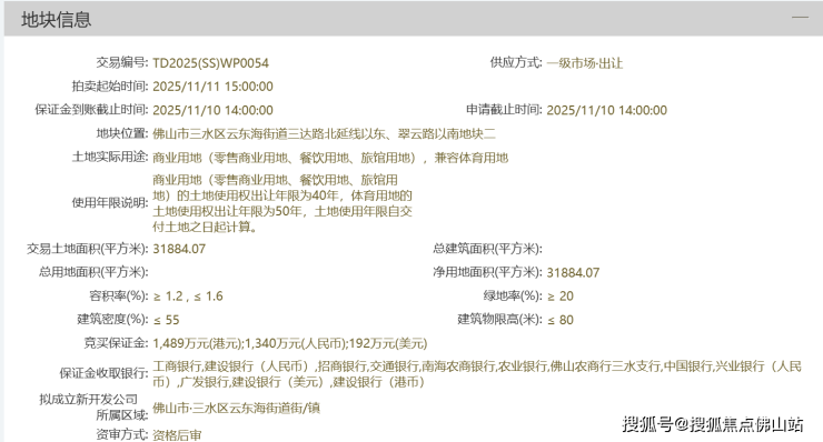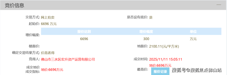 近日,佛山市三水区宏升资产运营有限公司夺得三水季华中学旁的商服文体地,成交价为6696万。经查,该公司背后股东为三水国资旗下的佛山市三水投资发展集团有限公司。出让文件显示,宗地占地面积31884.07㎡,建筑…