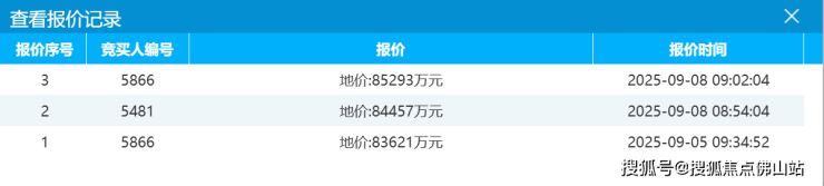 从报价记录来看,除了佛铁投资外,还有另一家企业报过价,每次报价幅度为836万。