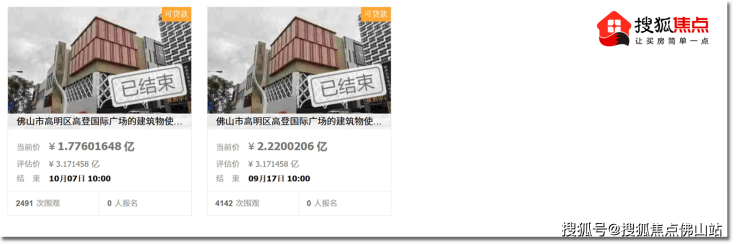 佛山市高明区高登国际广场的建筑物使用权(包含商业体、地下室、公寓楼以及地上附属材料)经历了两次流拍。