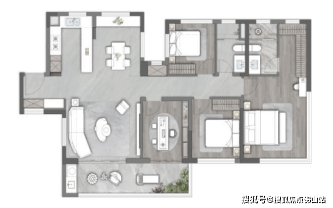 此外,该户型约15㎡玄关花园、270°景观阳台、超60㎡的方厅,这些亮点让它拥有150㎡的空间感受。