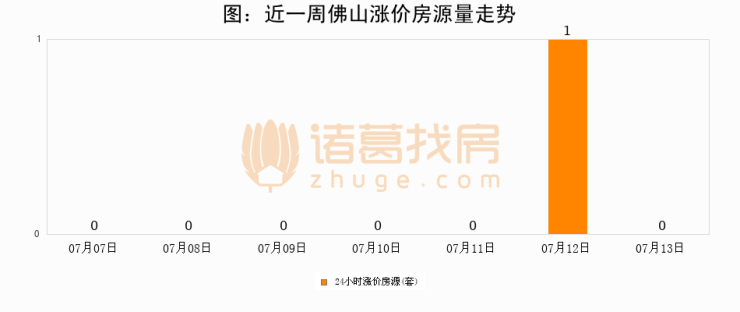 根据诸葛找房数据显示,佛山24小时涨价房源量为0套,较07月12日减少1套,环比下降100%。与此同时,涨价房源占比小幅回落,对于购房者来说是一个入市窗口期,购房者可抓住时机入市。