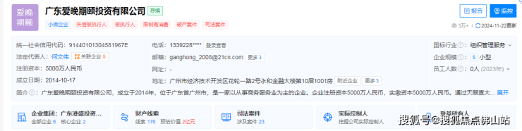 黄埔爱晚期颐康养项目,有同名注册公司【广东爱晚期颐投资有限公司】,法人代表与港盛集团一致,企业处于存续状态,但显示失信被执行人、被执行人、限制高消费、破产案件 等多个标签。