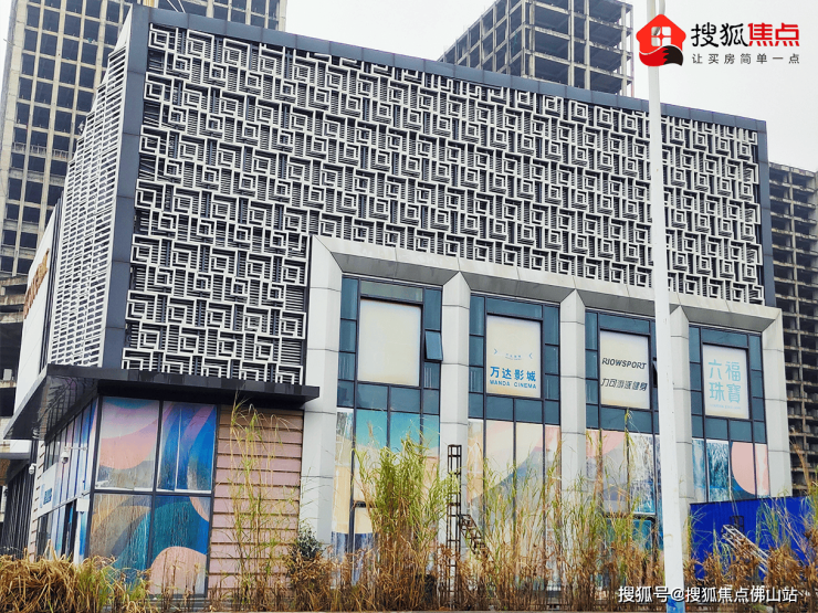 商业体外立面还展示着泛黄掉色的成功招商商家,有万达影城、力可游泳健身、六福珠宝。