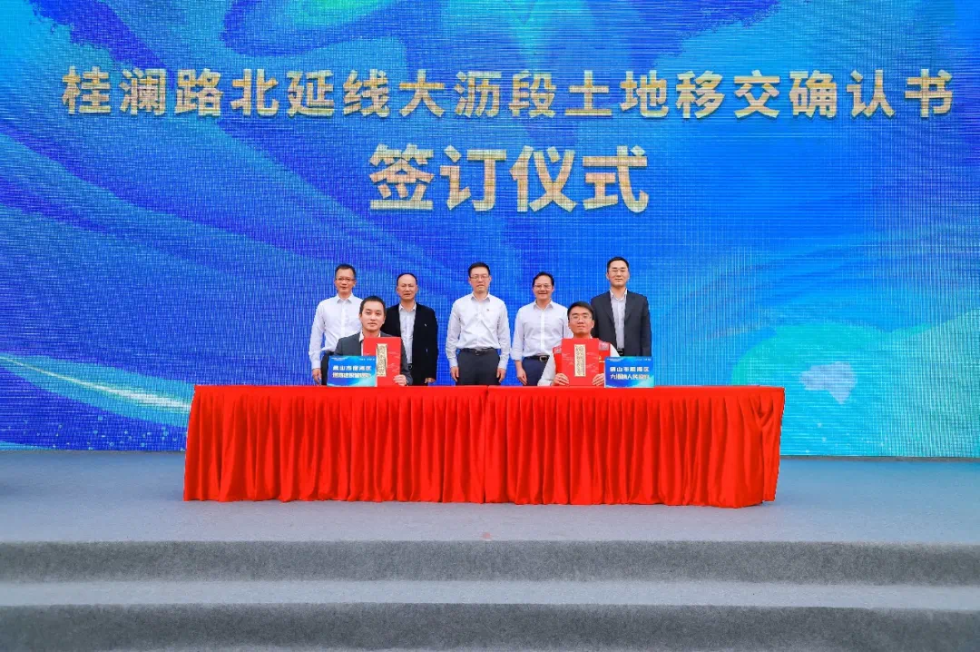 现场,大沥镇人民政府和佛山市南海区道路建设管理处正式签订桂澜路北延线大沥段土地移交确认书。该项目的实施,将进一步加速“南海之眼”片区和广佛国际商贸城中心区的建设,为大沥镇的城市更新、商贸转型和实现广佛全域同城化注入新动能。
