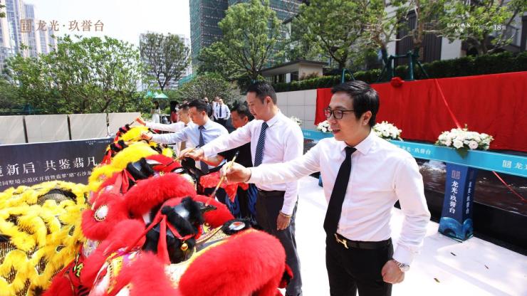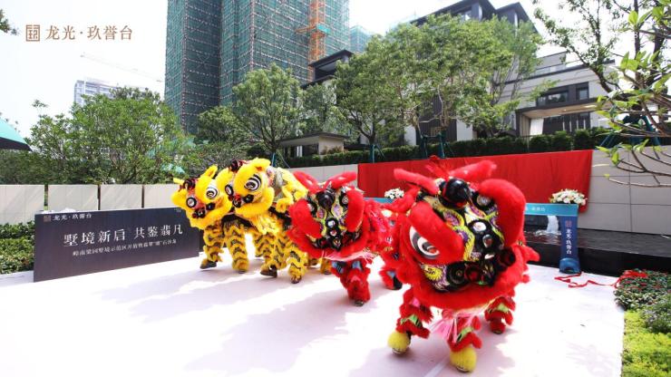 锣鼓齐鸣、礼炮震天,在持续不断的激昂鼓声中,祥瑞之狮引领着嘉宾齐进示范区参观,龙光·玖誉台墅境示范区的神秘面纱也逐一被掀开。