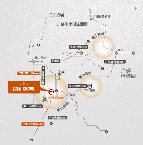 与深圳湾前海优质物业一致,碧桂园·世纪中心的另一个优势呼之欲出:按政府远期规划,广佛线3期与佛山地铁6号线交汇站小布站,将设在项目入口附近(信息来源:佛山市创建国家公交都市示范城市实施方案),相关规划建成后,五横五纵八轨道,内通外联,3站到广州南站,6站到琶洲,7站到金融城,30分钟触达广佛都市圈。