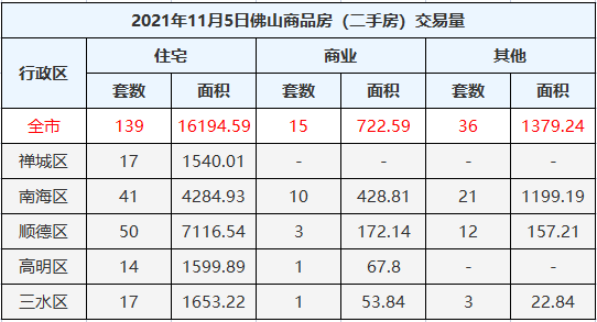 11月5日佛山五区一手房网签228套,二手房网签139套