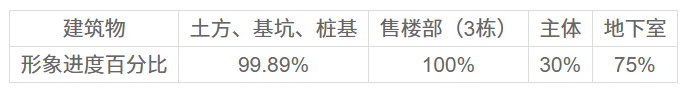 根据估价委托人提供的《当代阅府项目工程款清单》中的“形象进度累计完成占比”,整个在建工程的形象进度百分比为56.44%,各项目名称具体见下表: