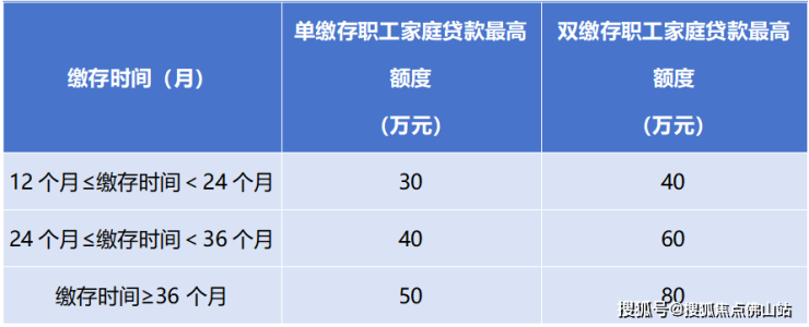 遵循“先存后贷、存贷挂钩”的原则,佛山市公积金贷款实行差别化贷款,即不同缴存时间对应不同的最高贷款额度。夫妻共同申请公积金贷款且符合公积金贷款条件的(以下统称双缴存职工家庭),缴存时间的认定以主借款申请人为准。在本市缴存住房公积金的高层次人才申请公积金贷款时,缴存时间按≥36个月认定。具体如下: