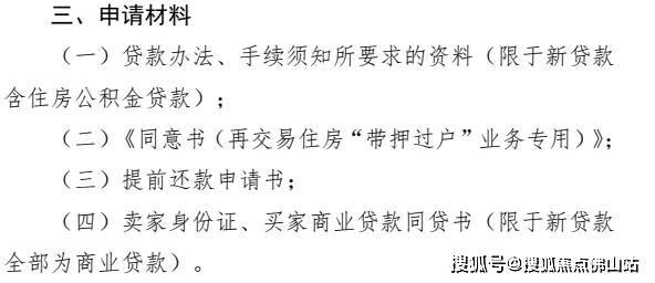 再交易住房(即二手房)“带押过户”住房公积金贷款 业务, 是指在佛山市行政区域内,申请办理已抵押不动产转移登记时,无需提前归还交易房产关联贷款、注销抵押登记 ,即可完成过户、再次抵押和发放新的个人住房贷款。