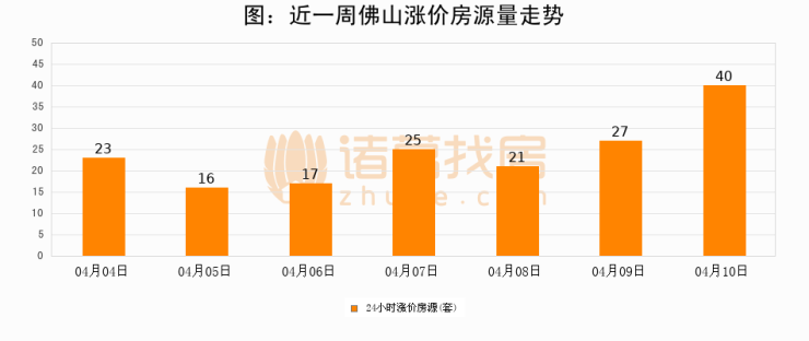根据诸葛找房数据显示,佛山24小时涨价房源量为40套,较04月09日增加13套,环比上涨48.1%。与此同时,涨价房源占比小幅扩大,业主信心有所提升。