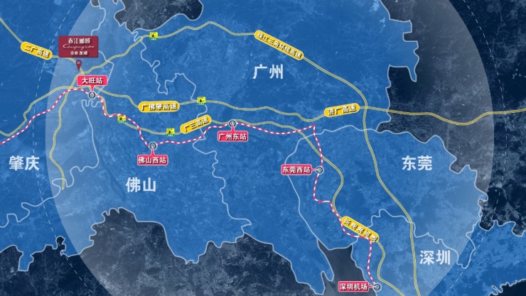 资料显示,「金嘉龙湖·春江郦城」位处广州西肇庆国家高新区核心发展片区,坐拥“3高速1城轨”的快速路网,通勤效率更高。从项目出发约100米即上高速,连接珠三角环线、广佛肇高速、二广高速,可快速通达广州城区。