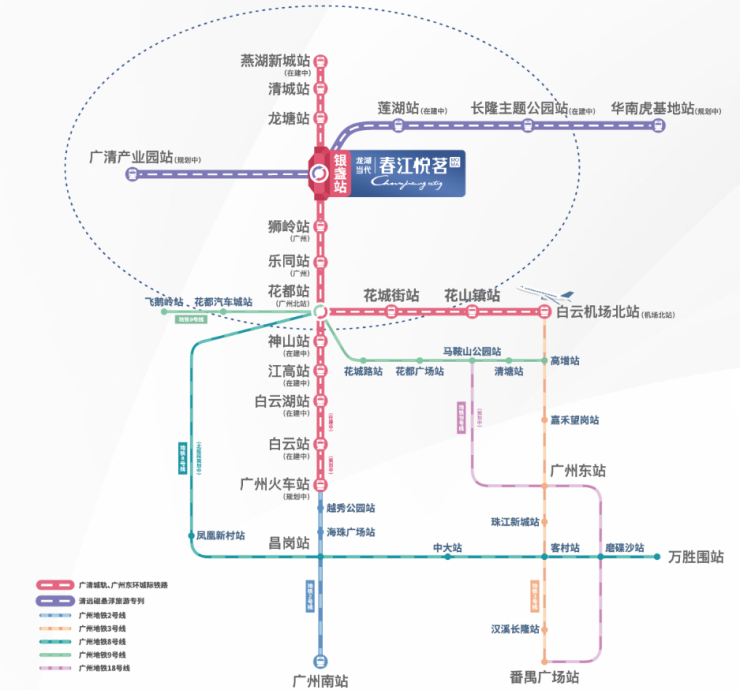 春江悦茗MOMΛ,距离广清新城两大经济动脉的交汇核心——银盏站,仅约200米步行即达。作为板块少有的双轨枢纽,也是最有价值的站点,不仅是广清城轨的首站,实现1站到广州,4站到白云,无缝链接机场、北站、棠溪TOD 3大枢纽;而且还有华南首条磁悬浮旅游专列交汇,连同广清产业园和清远森林王国2大千亿产业核心。
