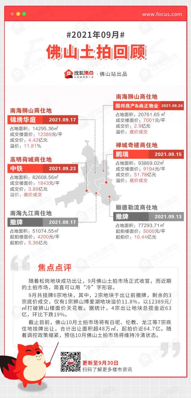 回顾9月,佛山共成功出让4宗商住地,总揽金超62.99亿。