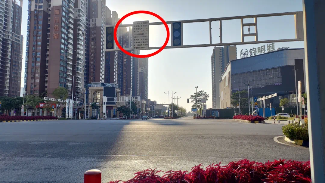 △蓝色区域为临时停车等候区2、增设相应标志标线。西江新城一小周边路段不同位置已增设交通管制提示标牌。