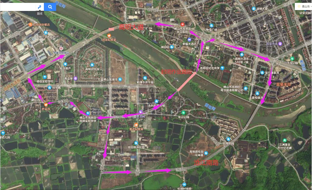 具体措施如下:单向通行路段堤岸路(即丽日名都与妇幼保健院、一小之间约300米道路)交通管制期间,堤岸路为南往北方向通行。