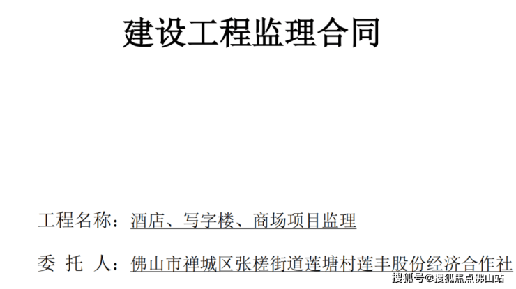 公告显示,酒店、写字楼、商场项目已由相关部门备案建设,招标人为佛山市禅城区张槎街道莲塘村莲丰股份经济合作社,建设资金来自自筹资金。