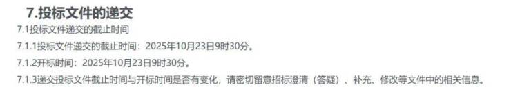 开标时间为2025年10月23日9时30分,目前还有近一个月的时间。