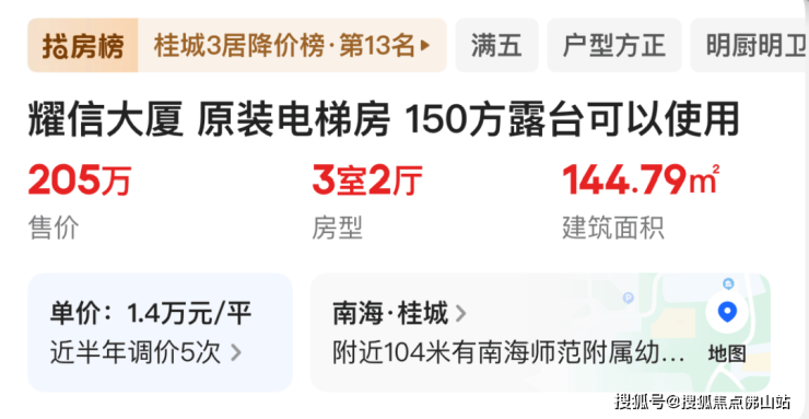 贝壳平台显示,该小区同样面积的二手房,挂牌总价为205万,单价约1.41万/㎡。