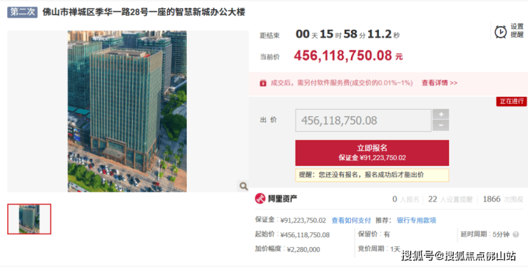 位于季华一路28号一座的智慧新城办公大楼正在进行第二次拍卖。