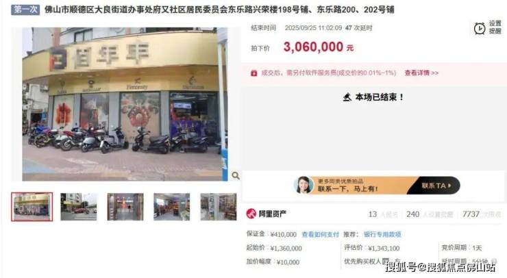 该3个商铺起拍价为136万,经过9位竞拍者81轮出价,最终成交价达306万,溢价约170万。